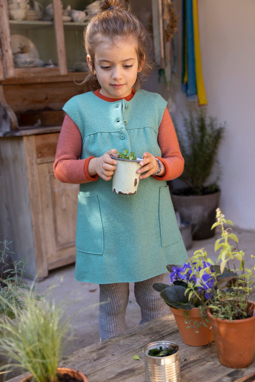 The easy-to-open button placket at the front makes it easy to put on our boiled wool dress.