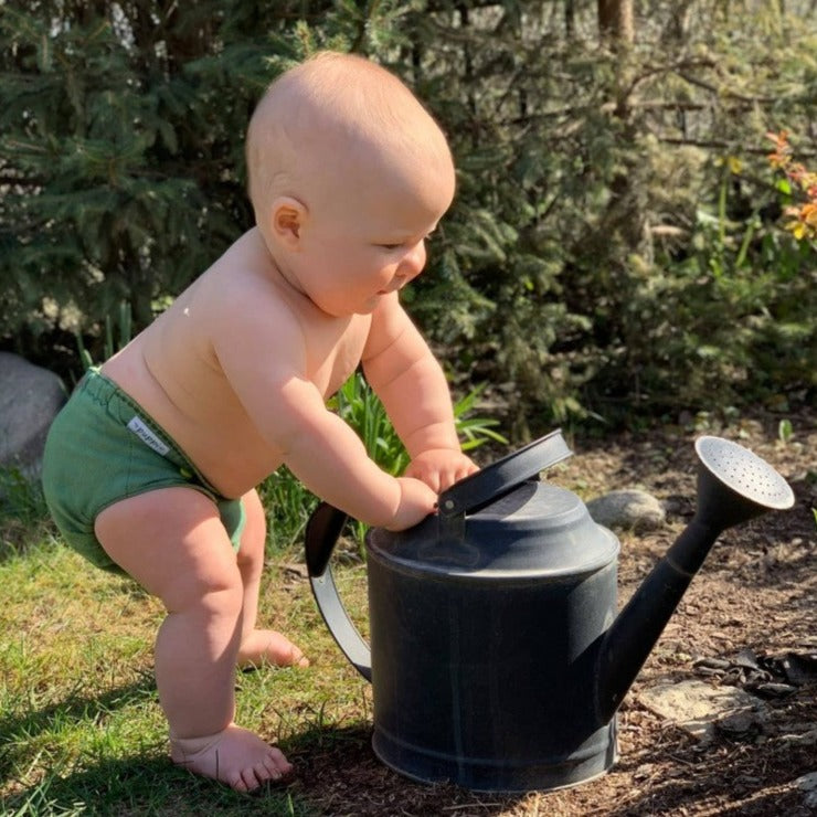 Colorful snaps and decorative stitching make this diaper a conversation piece. The leg elastics are soft yet very stretchy, which allows for a trim fit on virtually every child. Once lanolised, these covers hold moisture very effectively. Wool is an extremely versatile fabric for cloth diapering-- it is breathable, temperature regulating (perfect for both cold and hot days), soft, and naturally antibacterial. Lanolin breaks down urine into salts and water, so it does not need to be washed as often as PUL diapers. Simply hang to dry between uses. However, a special washing and re-lanolising procedure is necessary on wash day.