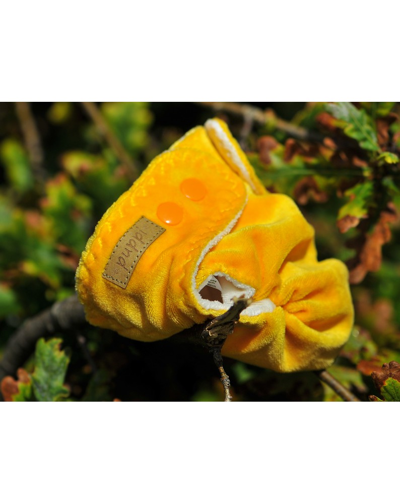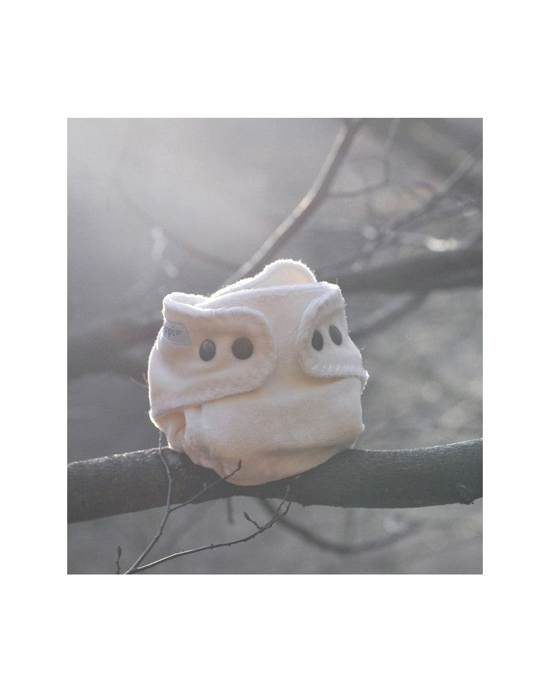 This nappy requires a water-proof cover. It will work great together with Puppi newborn wool covers. Wool cover, every so often lanolised, are a very efficient solution to prevent leaks. Fitted nappies are also a great set with Disana wool shorties.