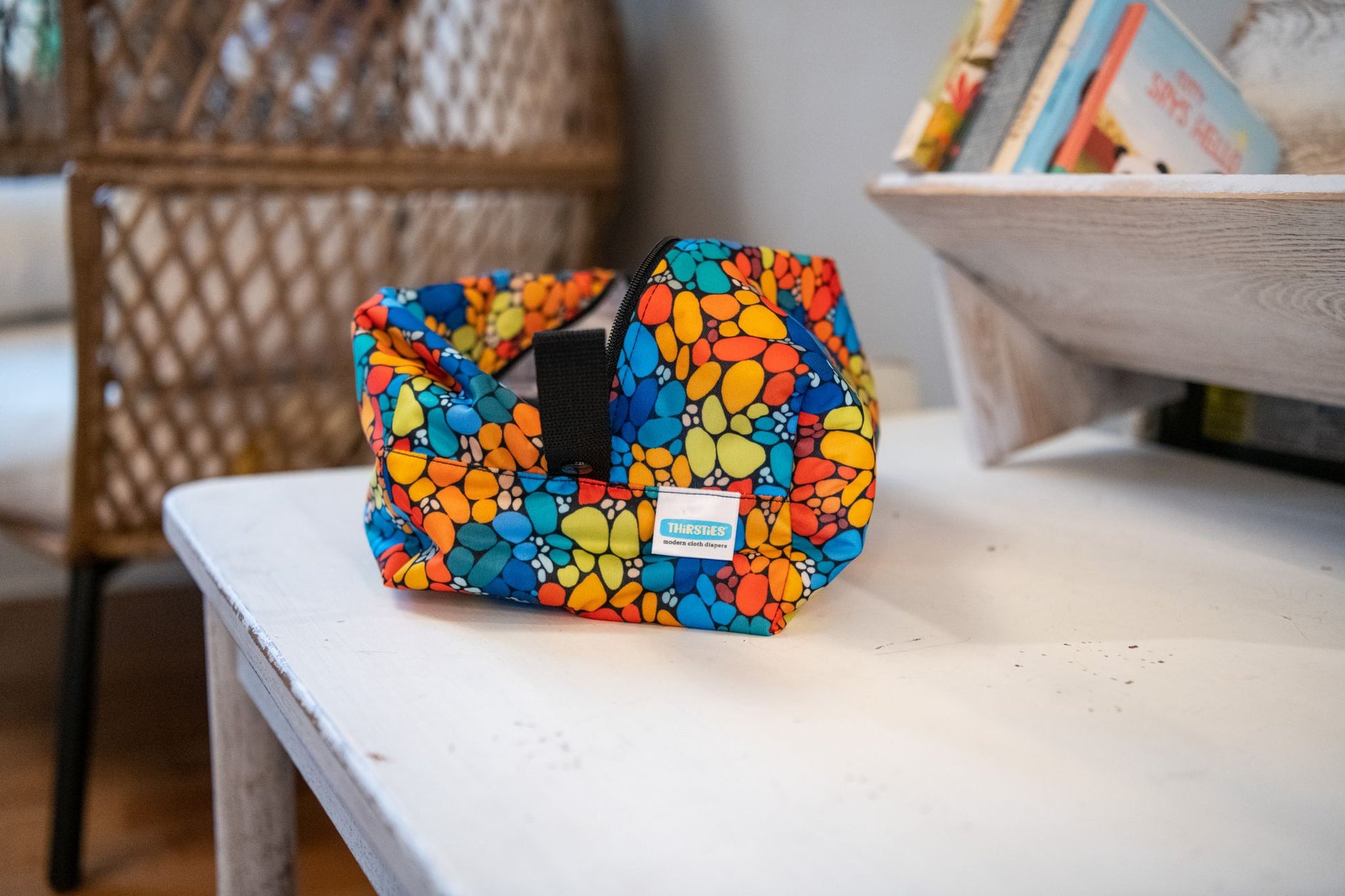Thirsties Simple Pod is perfect for all your organisational, storage and travel needs: double-lined with waterproof PUL to help keep toiletries from leaking when on the go and constructed with one horizontal and one loop strap to easily hang or carry. Organisation has never been easier... or cuter!